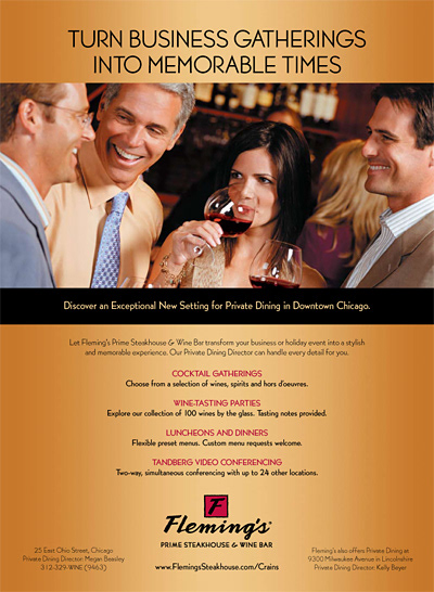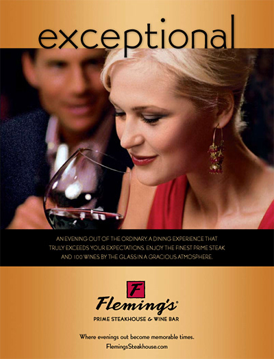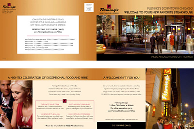 Graphic design for print advertising and direct mail materials for Fleming's Steakhouse (a client of Direct Partners agency.)