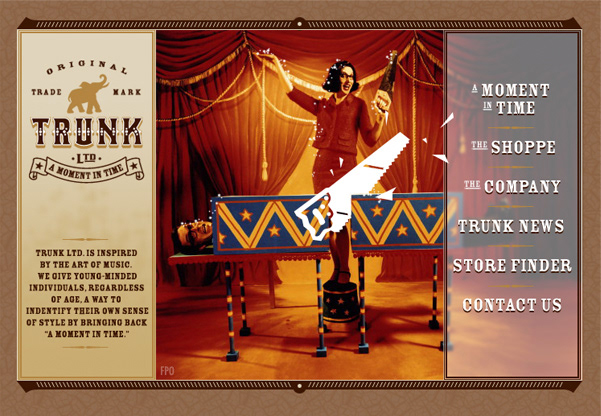 A spec homepage for the redesign of the site for Trunk Ltd., a fashion company and client of ONE Interactive.